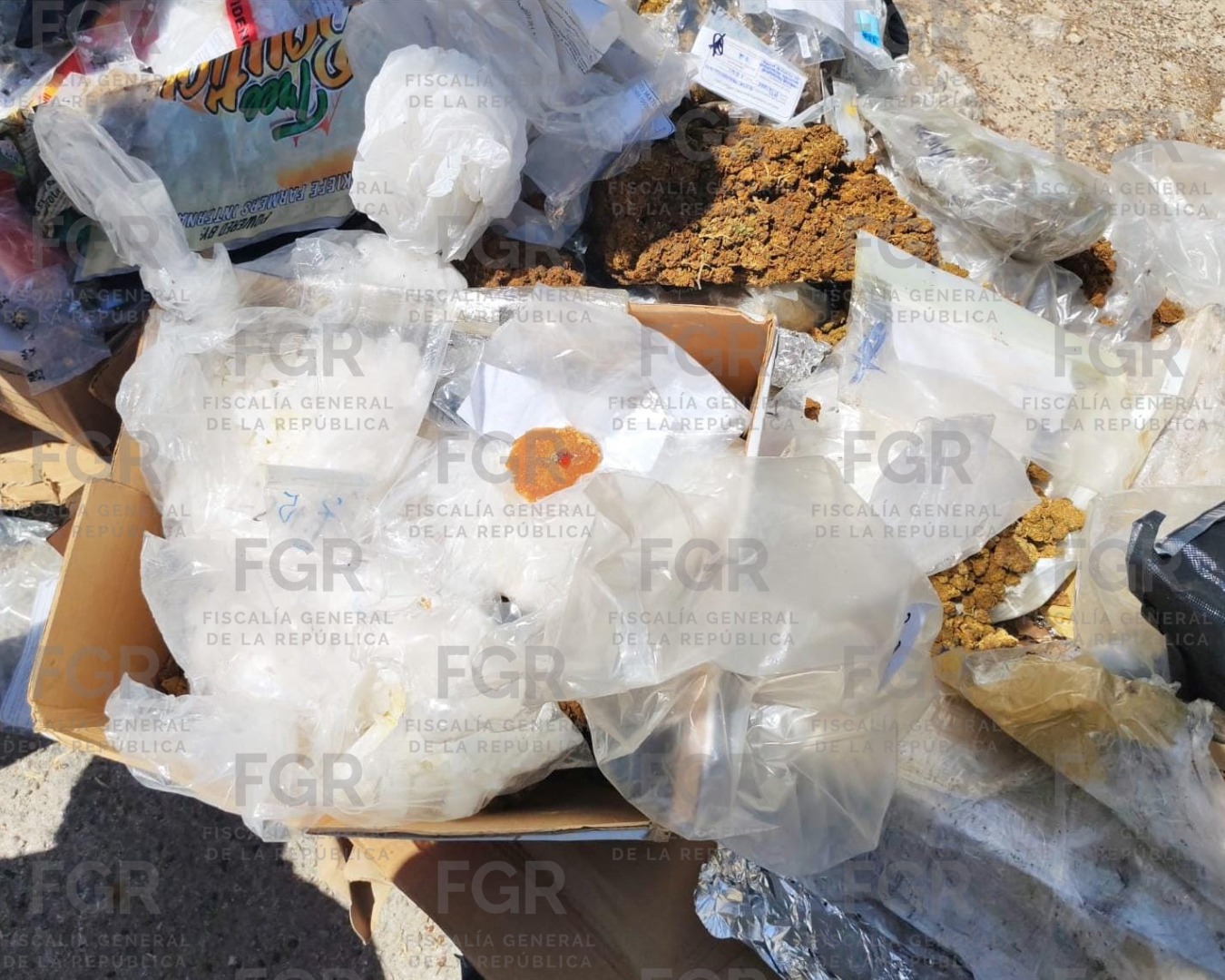 Los narcóticos destruidos fueron 17 kilos 535 gramos 300 miligramos de cannabis sativa l. (marihuana), cinco kilos 365 gramos 750 miligramos de clorhidrato de metanfetamina, 166 gramos 300 miligramos de clorhidrato de cocaína, 488 gramos 800 miligramos de cocaína, 586 gramos 600 miligramos de plantas de cannabis sativa l., 600 miligramos de DMT, cinco mililitros de THC, 27 cápsulas de alprazolam, 44 cápsulas de clonazepam, 28 cápsulas de fentermina, 13.5 cartuchos de tetrahidrocannabidol y 67 fragmentos de LSD, que dieron un total de 23 kilos 957 gramos 95 miligramos.