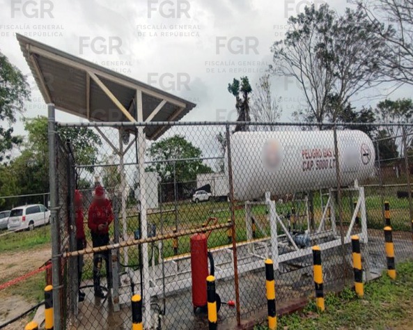 El agente del Ministerio Público de la Federación (AMPF), en coordinación con personal policial y pericial de la Agencia de Investigación Criminal (AIC) llevaron a cabo la diligencia en dos inmuebles con apariencia de estación gasera, en un fraccionamiento del municipio de Nacajuca, Tabasco.