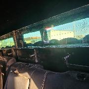 y con blindaje artesanal en la parte trasera de la camioneta y el otro un automóvil
