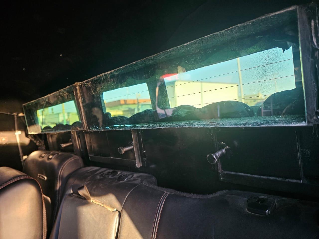 blindaje artesanal en la parte trasera de la camioneta y el otro un vehículo