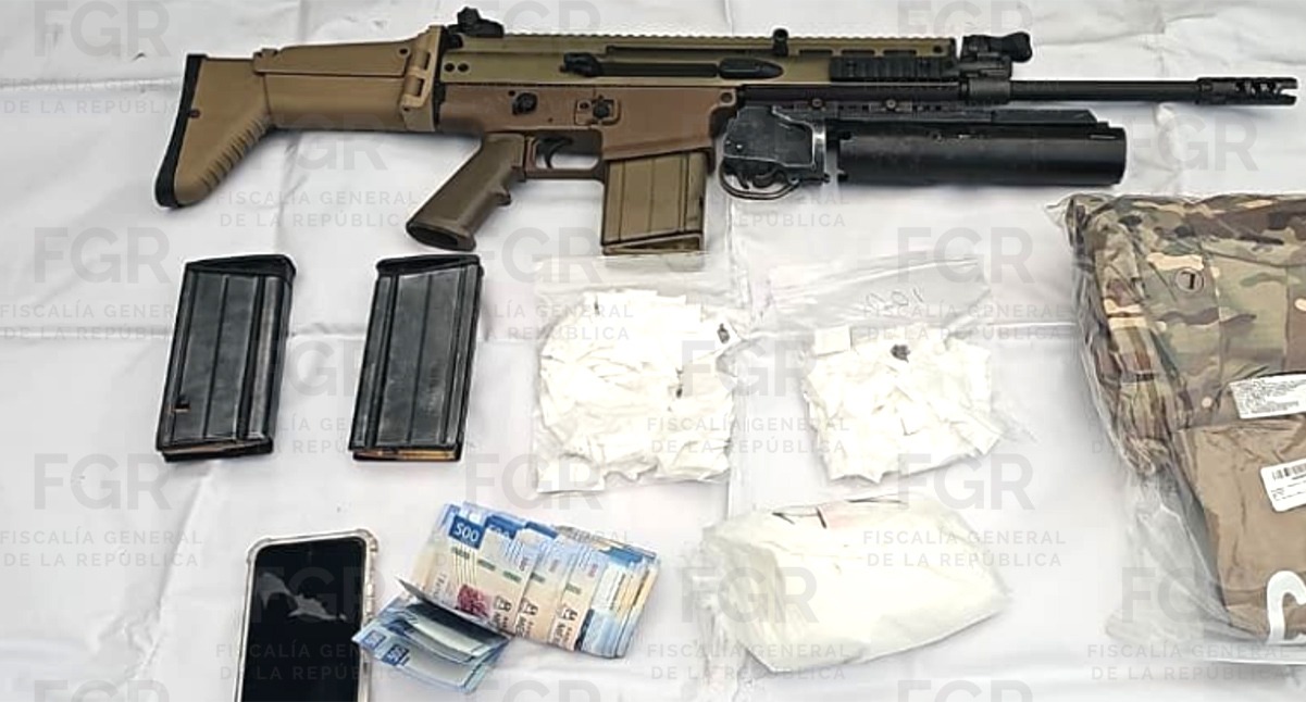 La Fiscalía General de la República (FGR) obtuvo de un juez vinculación a proceso para David "N", por su probable participación en los delitos de contra la salud en la modalidad de posesión con fines de comercio en la variante de venta de clorhidrato de cocaína; portación de arma de fuego, de aditamento para arma de fuego y de cargadores, todo de uso exclusivo de las fuerzas armadas.
