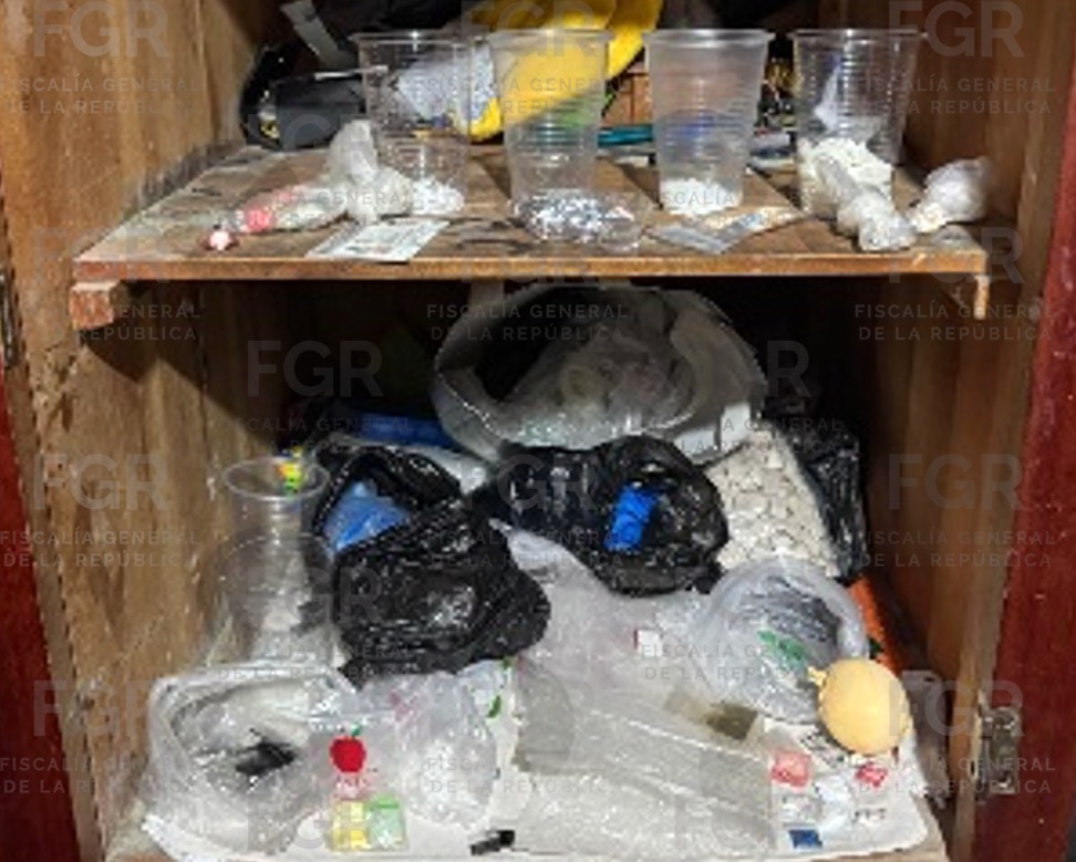 Cabe destacar que en días pasados, con base en trabajos realizados por el Gabinete de Seguridad, específicamente de la Secretaría de Seguridad y Protección Ciudadana (SSPC), Secretaría de Marina (Marina), en coordinación con personal de la FEMDO y peritos de la Agencia de Investigación Criminal (AIC), se llevaron a cabo cateos en distintos puntos del Estado de México, donde se realizó la detención de los imputados y el aseguramiento de clorhidrato de metanfetamina, marihuana y cocaína, además de cartuchos para armas de fuego, básculas grameras, entre otros objetos del delito.