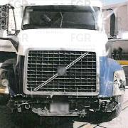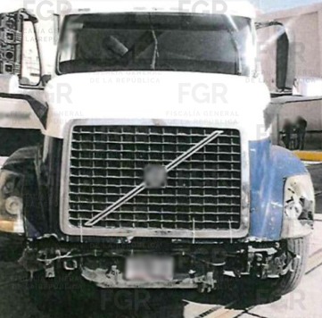 tractocamión, acoplado a una caja termo, en el puesto militar de seguridad