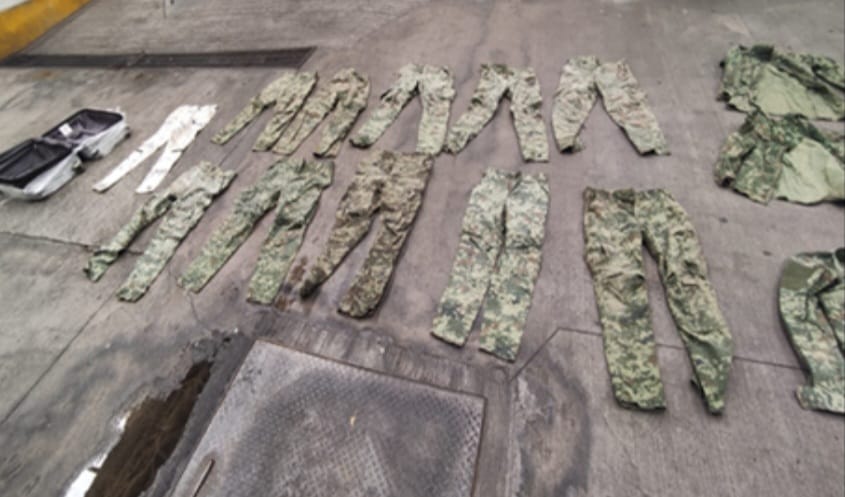 así como uniformes con apariencia similar a los de las Fuerzas Armadas.