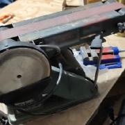 en forma de bala, una laptop, maquinaria diversa, un taladro de banco, una