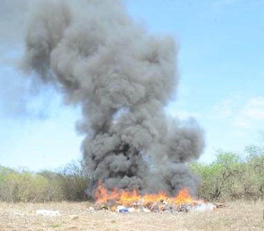 coordinación con los tres órdenes de gobierno, destruyó narcóticos y objetos