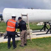 Estatal Ver., Veracruz de Ignacio de la Llave 20 de abril de 2026 Comunicado FGR DPE/1675/2026 En cateo, FGR asegura más de tres mil 800 litros de gas L.P. en Chiconquiaco, Veracruz